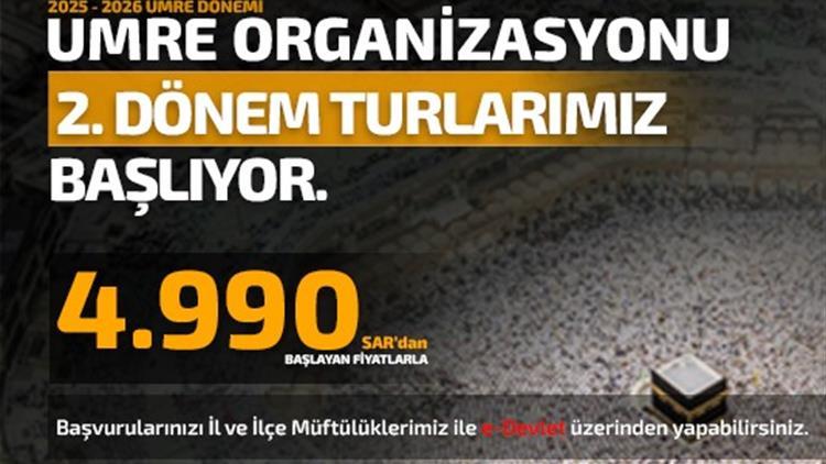 Diyanet İşleri Başkanlığı 2025-2026 Yılı Umre Organizasyonu kapsamında "2. Dönem Umre Turları" açıklandı.